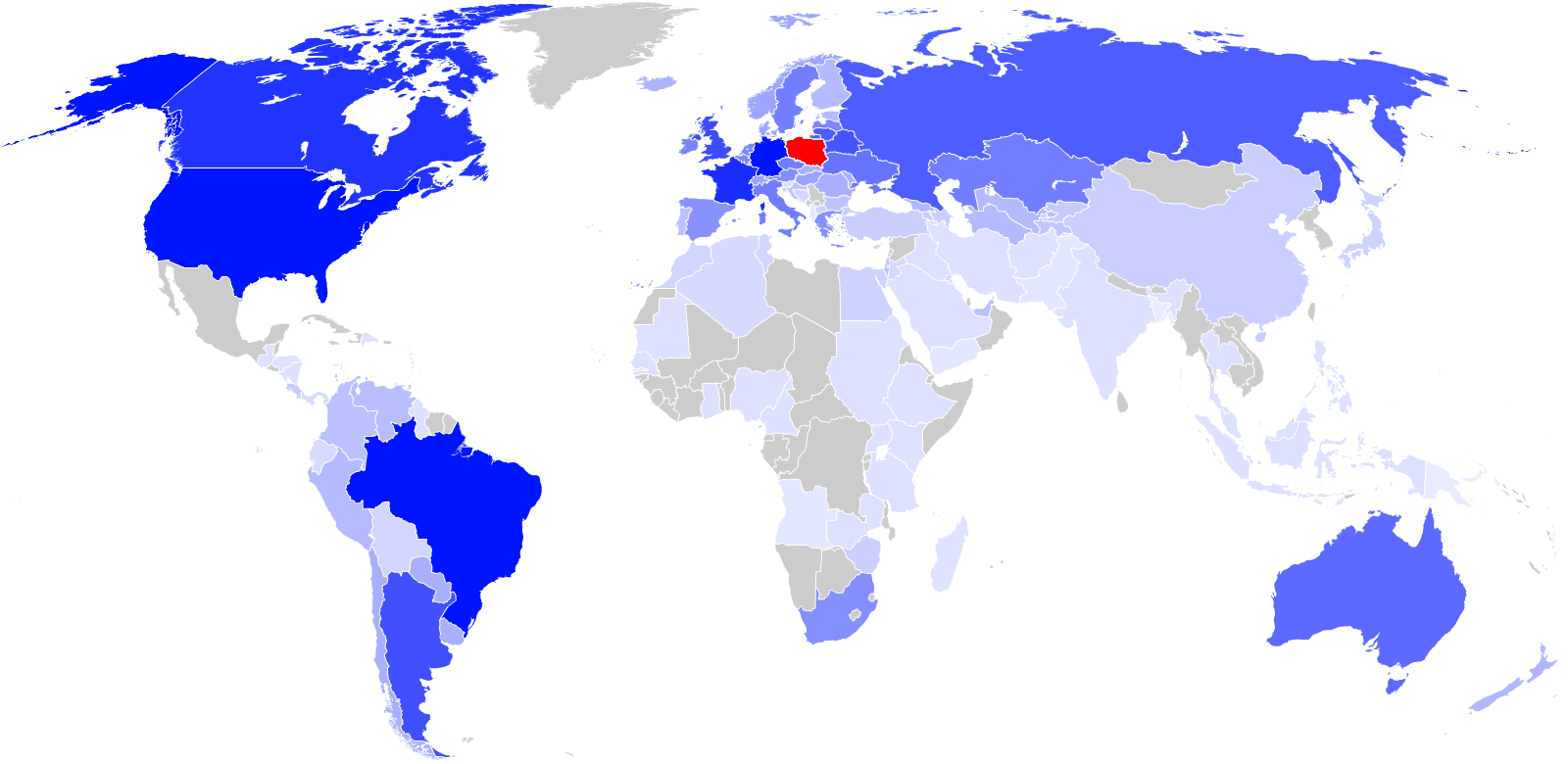 oraz... Turkmenistan, Uzbekistan, Izrael, Wenezuela, Słowacja, Kolumbia, Luksemburg, Portugalia, Zjednoczone Emiraty Arabskie, Bułgaria, Estonia, Tadżykistan, Kirgistan, Armenia, Serbia i Czarnogóra, Azejberdżan, Turcja, Zimbabwe, Liban, Egipt, Japonia, Syria, Chorwacja, Boliwia, Cypr, Maroko, Tunezja, Bośnia i Hercogowina, Ekwador, Libia, Chiny, Algieria, Jordania, Kuwejt, Kostaryka, Panama, Singapur, Słowenia, Macedonia, Kuba, Bahrajn, Afganistan, Arabia Saudyjska, Dominikana, Etiopia, Filipiny, Ghana, Gwatemala, Honduras, Indie, Indonezja, Iran, Irak, Kamerun, Kenia, Kongo, Korea Południowa, Malezja, Mauretania, Monako, Nikaragua, Nigeria, Rwanda, Senegal, Sudan, Tajlandia, Tajwan, Tanzania, Uganda, Wietnam, Wybrzeże Kości Słoniowej, Zambia, Madagaskar, Albania, Angola, Jemen, Pakistan, Watykan, Malta, Bangladesz, Papua-Nowa Gwinea, Korea Północna, Andora, Mauritius, Liechtenstein, Mozambik i pewnie jeszcze wiele, wiele innych.